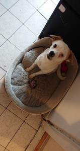 Kölyök vagyok rágok mindent is. Duna parti séták,pockászás.Homokban rohangálás.